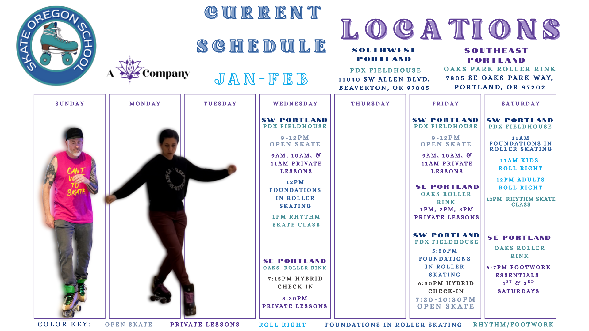 Currently you can find our classes in Beaverton at PDX Fieldhouse off of Rte 217 and SW Allen Blvd. Come in your protective gear and own skates ready to have a great time.