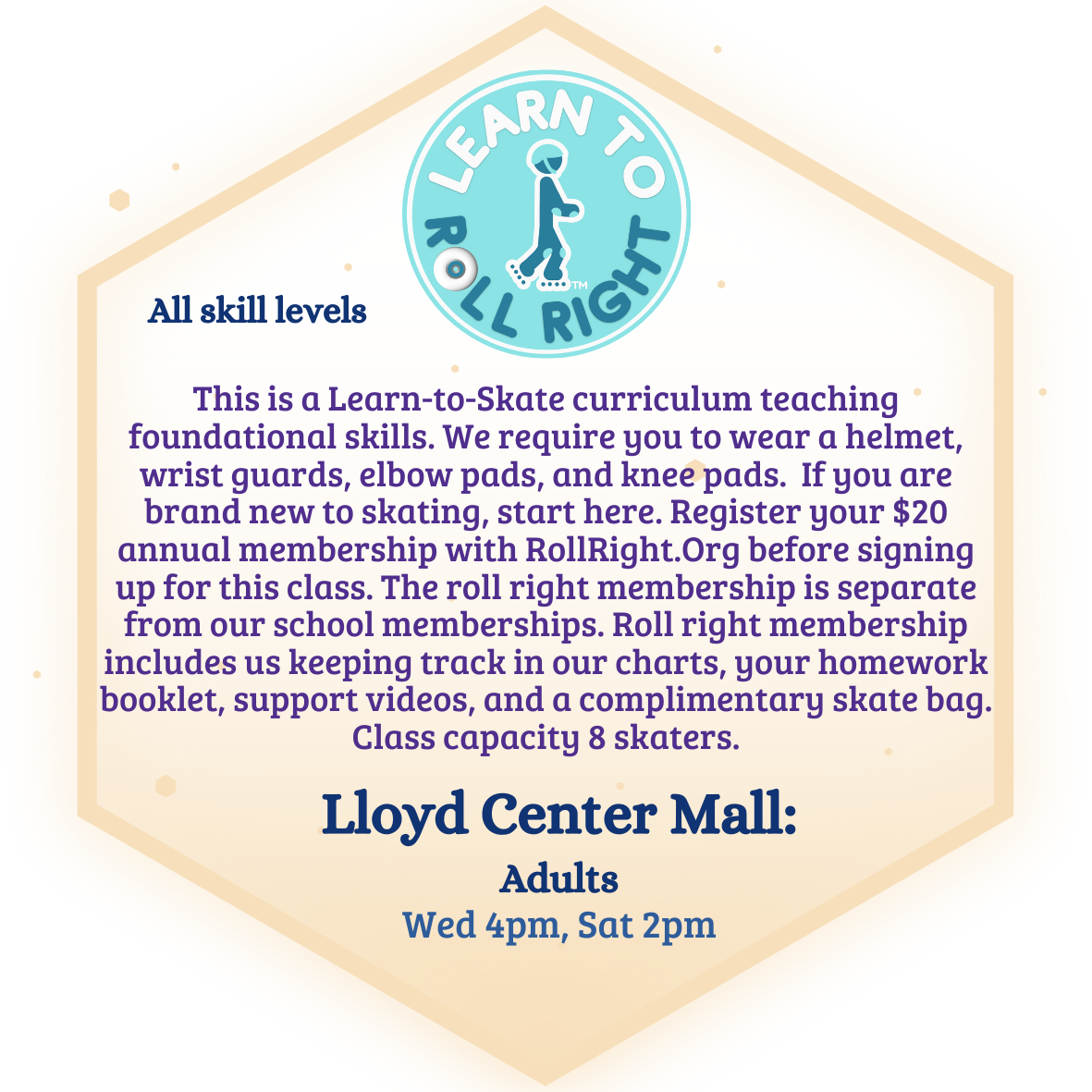 ***All lessons and group classes at SOS Skate Studio in Lloyd Center Mall include 15 minutes of practice time in the studio following the lesson or class. If it is a 6pm class, you may show up 30 minutes prior to class for practice.***