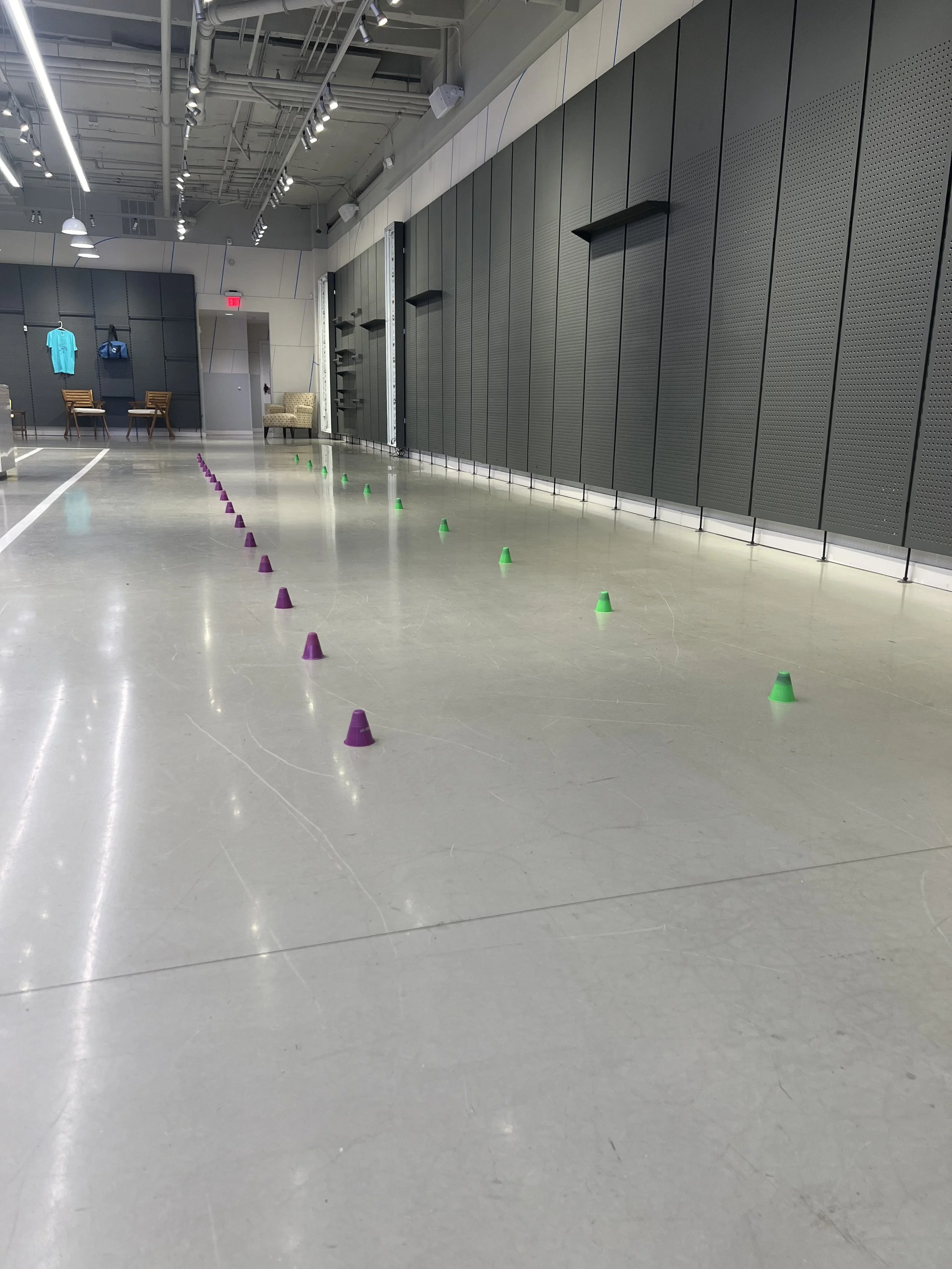 At SOS Studio you can book time for small space practice at $5/hr. We always encourage you to wear full gear (helmet, wrist guards, knee pads, and elbow pads). Any time you are skating in our space you are skating at your own risk. You can set up in front of a mirror. We can supply you with a shelf for the peg board to hold your water bottle and prop up your phone. You may create your lane to practice your drill. You’ll be able to wear headphones/earbuds or you can skate to our playlist. Check out the community desk in the center of the space. Feel free to utilize any of our support props to help support your skate journey. There are a spin trainers, cones, painters tape, sidewalk chalk, skate tools and more that you can borrow for practice. Please clean up and put things back when you are finished.