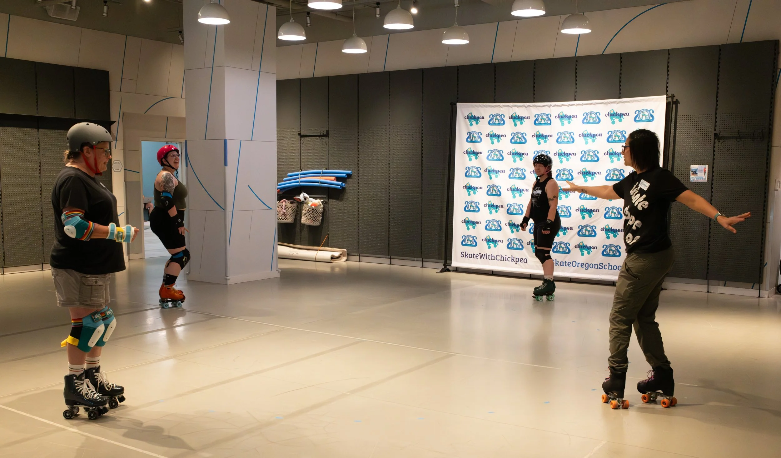 $5 Rental skates are available in order to try skating before investing in your own gear only at our Lloyd Center location and with minimum 24 hr notice in Beaverton (Text Chickpea with rental size request 503-893-0878).